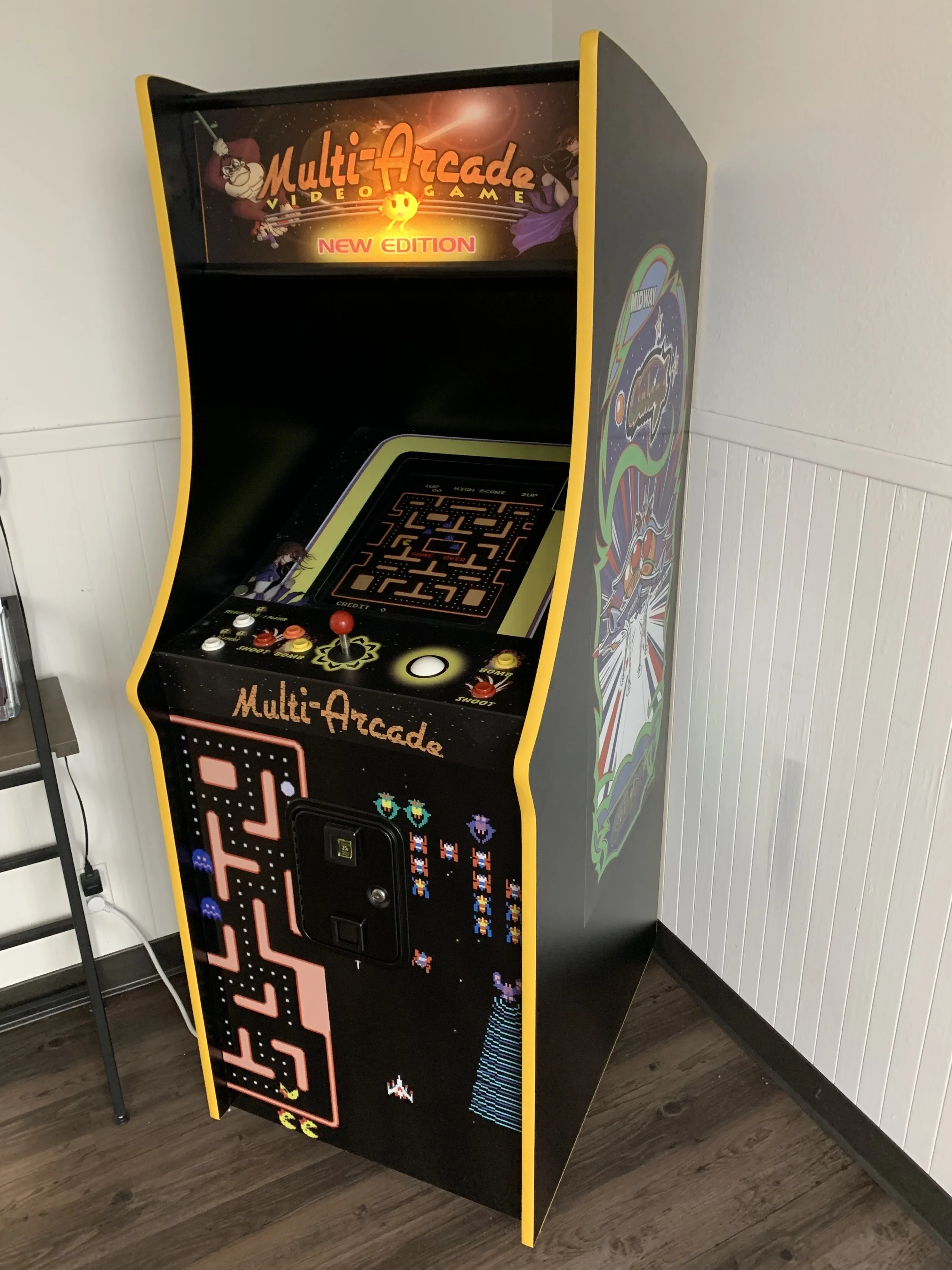 “I love this game! We put it in the entry area of the office. Many hours of “relaxing” have been spent here. A number of meetings that were supposed to take place in the conference area now take place huddled around this game. It looks and sounds just like I remember all those games in the 80’s. The only difference is I get to keep hitting continue without having to beg mom for more quarters.”
